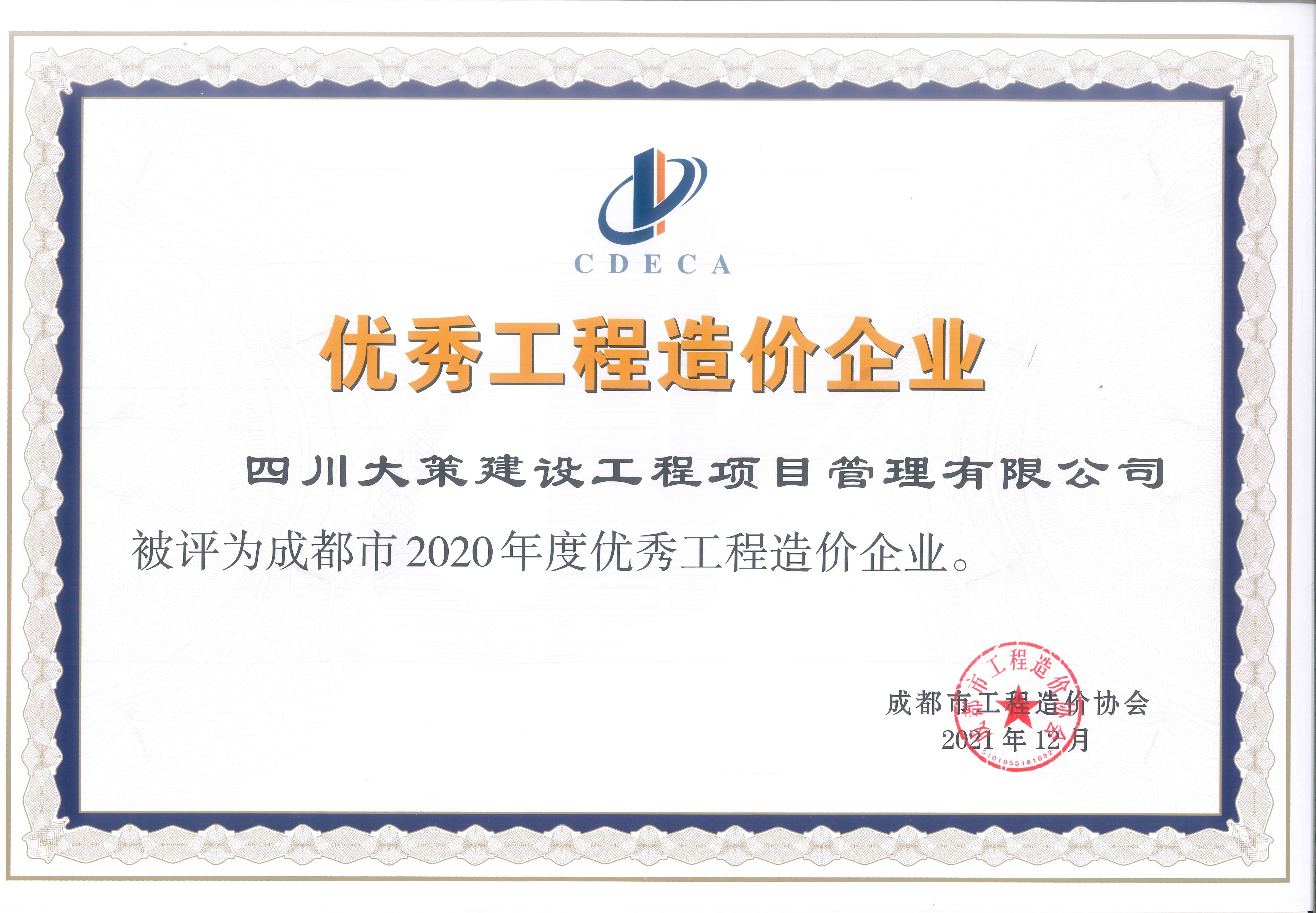 - 2020年度優(yōu)秀工程造價(jià)咨詢(xún)企業(yè)